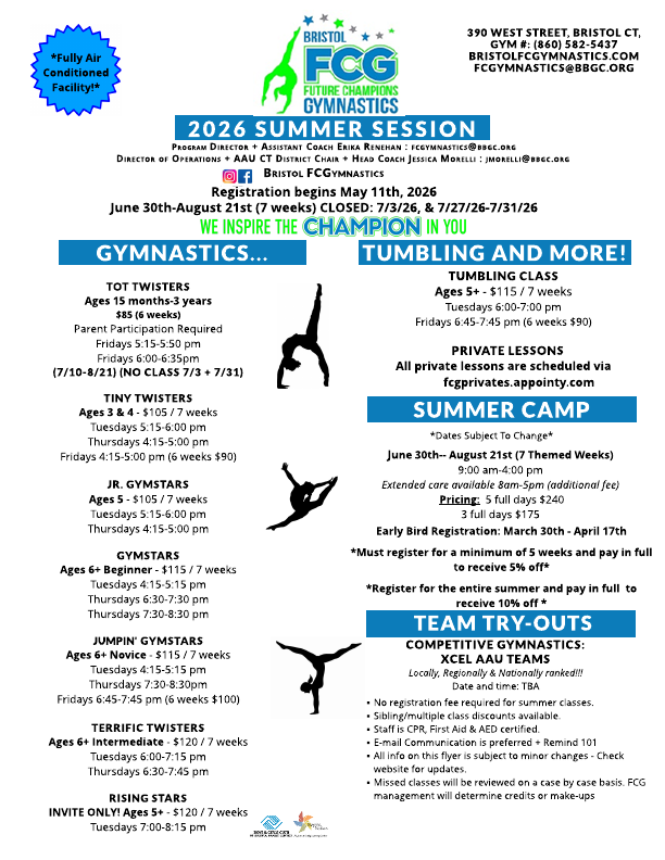 Please email Erika Renehan at fcgymnastics@bbgc.org for any questions.